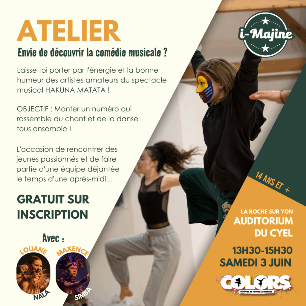 Rejoignez l’aventure i-Majine : auditions le 26 avril ! Avril 2025 L’association i-Majine est à la recherche de nouveaux talents pour son prochain spectacle ! Vous êtes passionnés de danse ou de chant ? Vous rêvez de monter sur scène et de partager une expérience artistique unique ? C’est le moment de tenter votre chance ! Nous recherchons : Danseurs (H/F) : 15 ans minimum, très à l’aise en danse, tous styles bienvenus. Chanteurs (H) : 15 ans minimum, ténor, baryton ou basse, à l’aise en danse. Les auditions se dérouleront le vendredi 26 avril à la salle des Châtaigniers de Mouilleron-le-Captif. 🎭 Déroulement de l’audition : Apprentissage d’une courte chorégraphie commune Un passage individuel de votre choix (maximum 1 minute 30) suivi d’un échange avec les jurés 📝 Inscriptions obligatoires via ce lien : https://forms.gle/9qHsrAo2hSgJL8bx9 Ne manquez pas cette opportunité de rejoindre une troupe dynamique et de vivre une aventure artistique hors du commun ! 📩 Pour toute question, contactez-nous par e-mail (i-majine@live.fr) ou via nos réseaux sociaux. À très bientôt ! 🎭✨